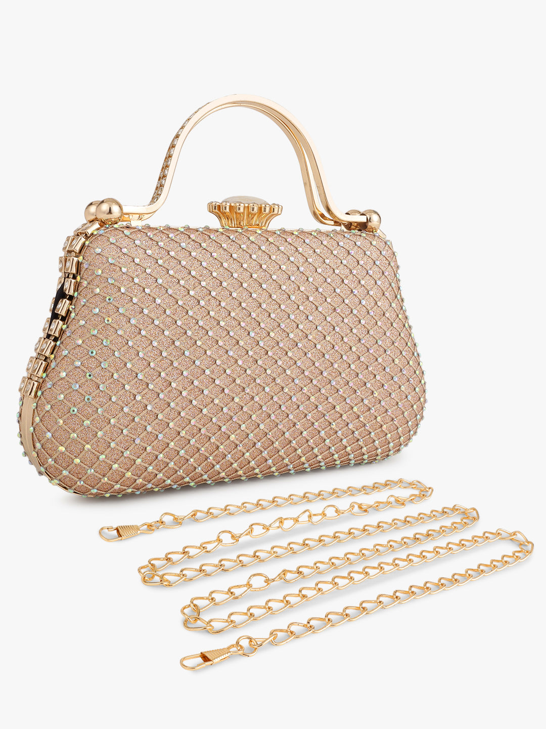Shine at every occasion with this glamorous gold clutch featuring a sparkling hexagon crystal pattern...