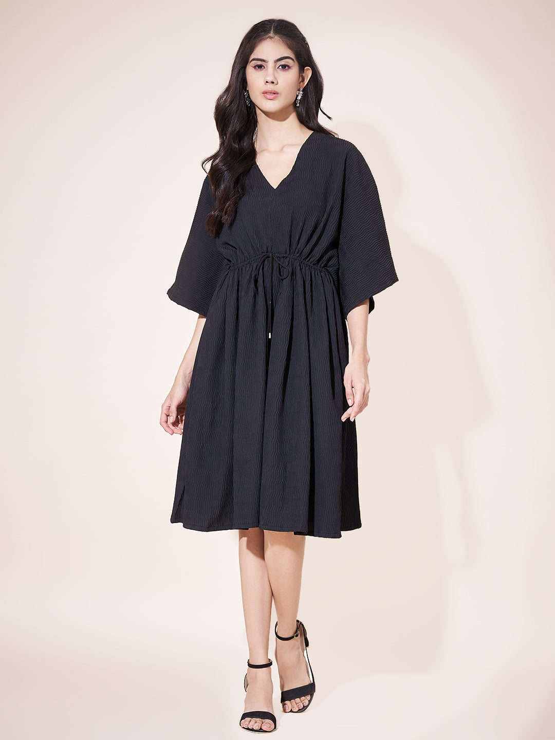 Classy Black Pleated Flared Dress