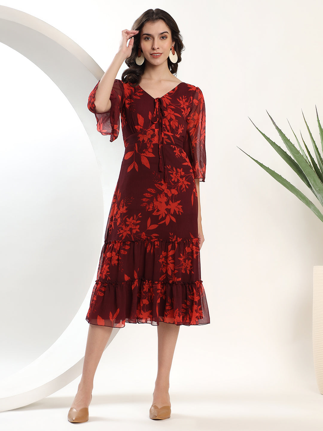 Floral Maroon Midi Dress