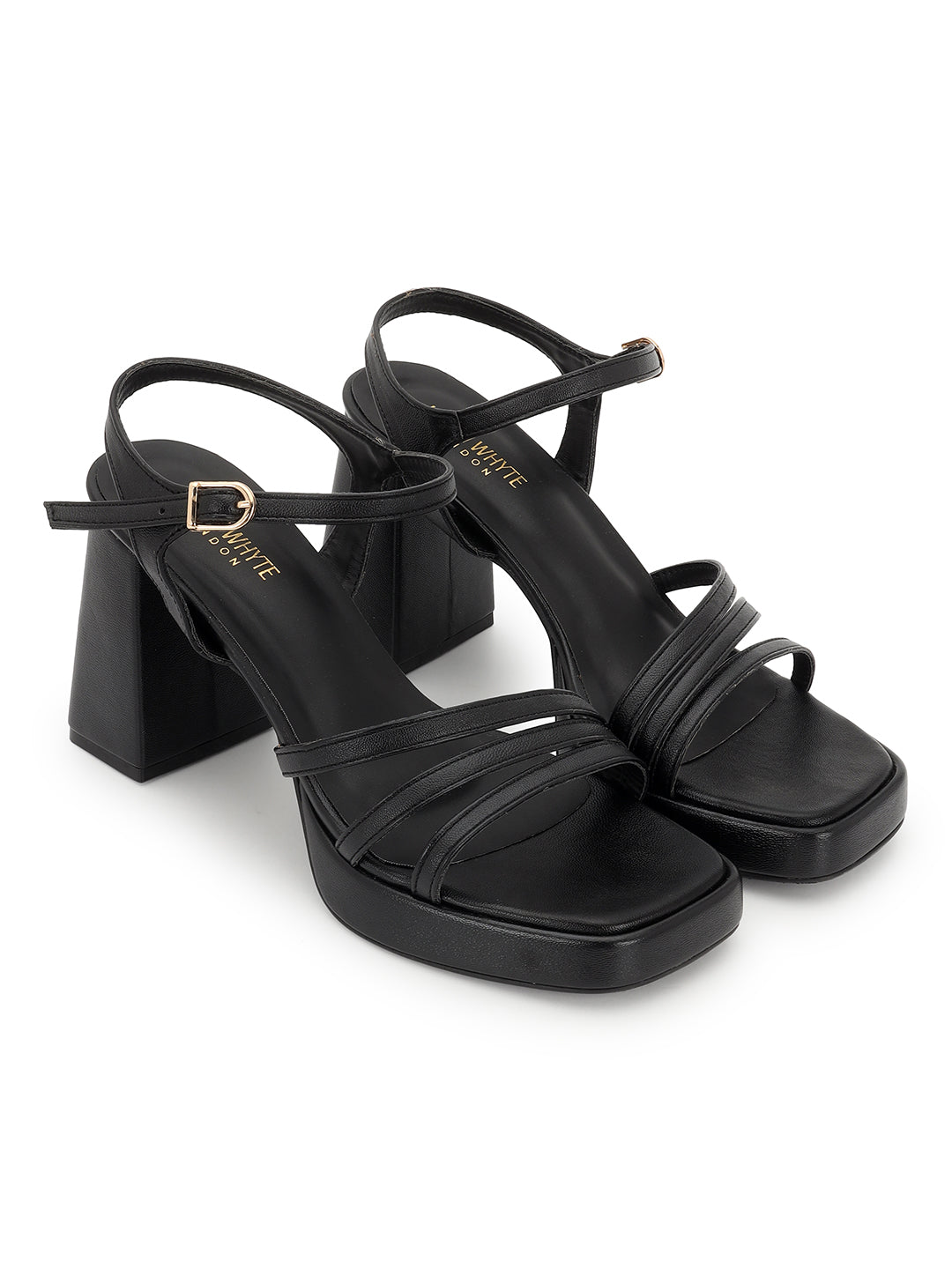 Black Strappy Block Heel Sandals
