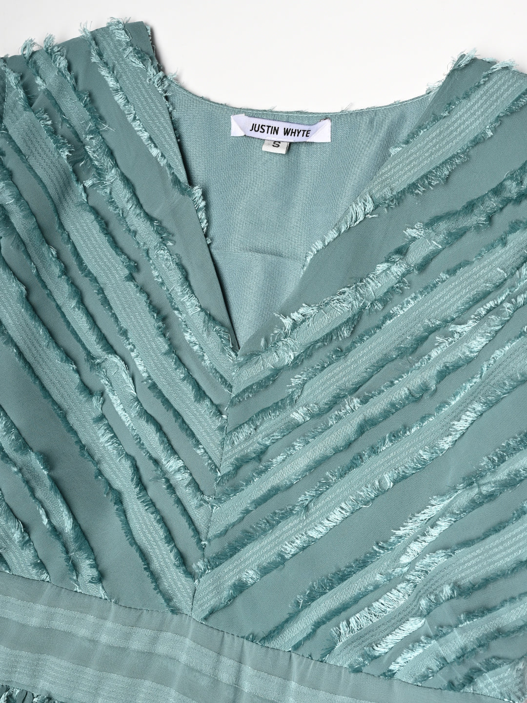- V-neckline with structured bodice featuring chevron-patterned sequins